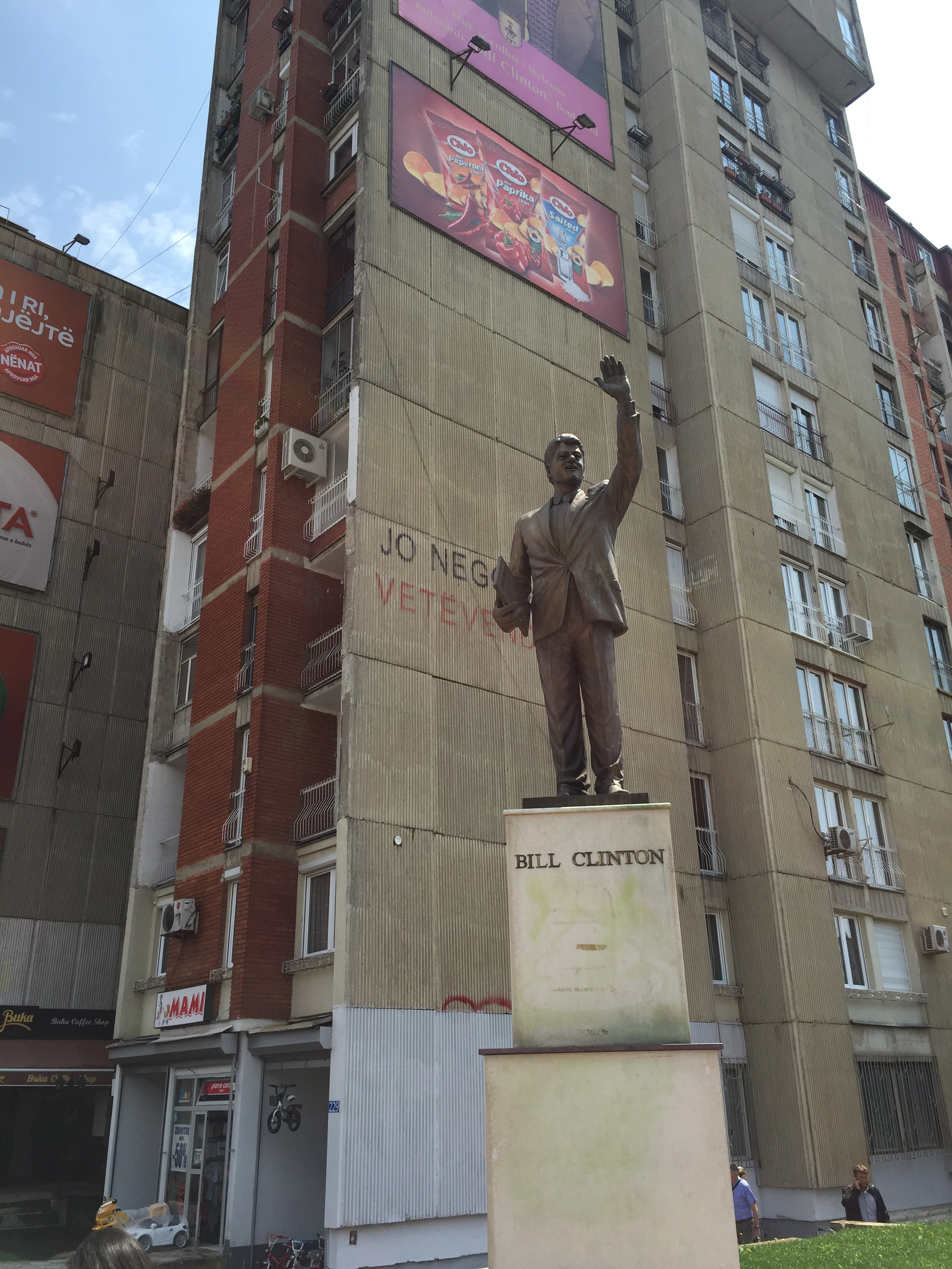 Bill Clinton står staty i Pristina och har en gata uppkallad efter sig