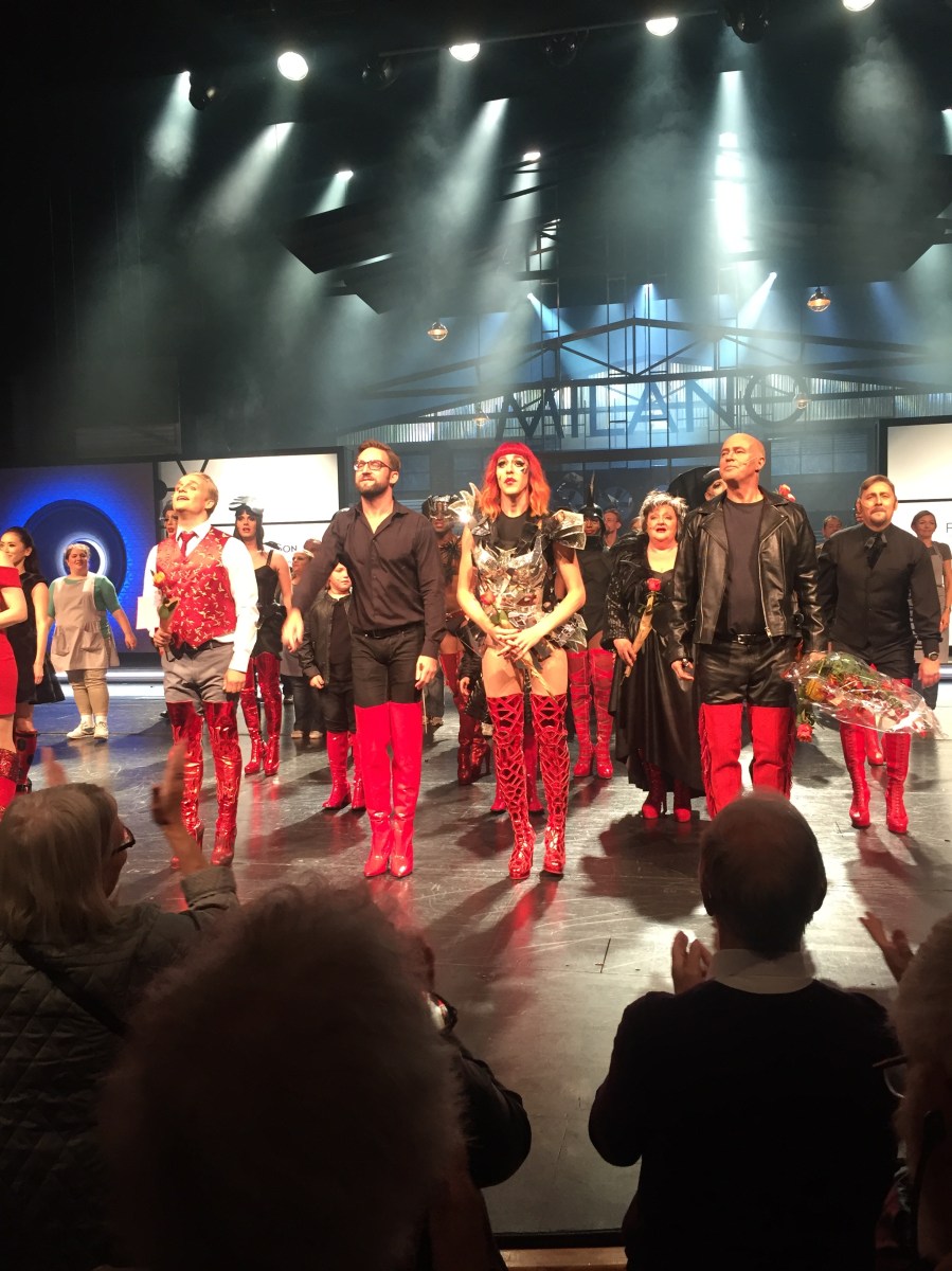 Musik ← Föregående Nästa → Den duktiga ensemblen tar emot stående ovationer efter dagens föreställning av Kinky Boots