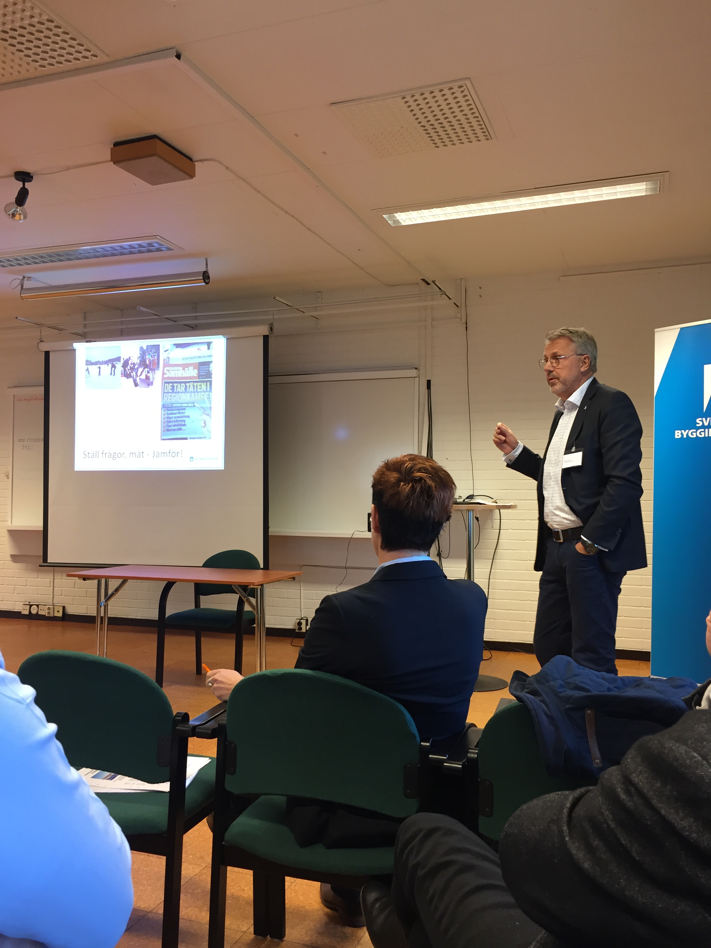 Kommundirektör Fredrik Geijer talar på Byggmästareföreningens möte