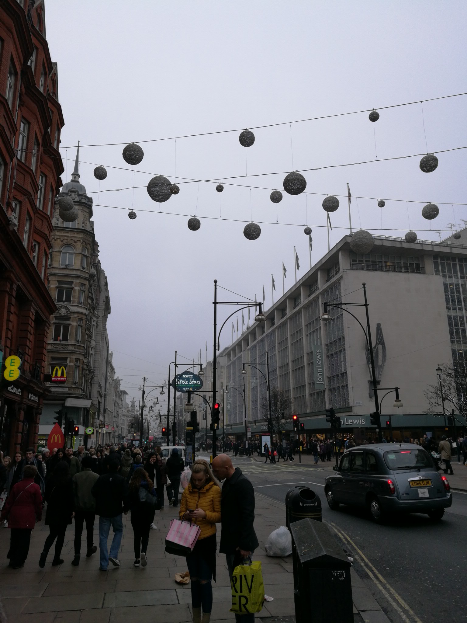 Dekorationerna över New Oxford Street om dagen