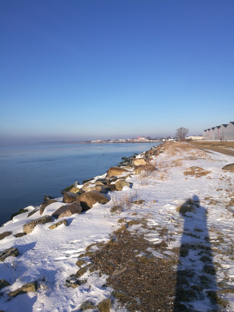 Ljuvlig morgon längs med strandpromenaden