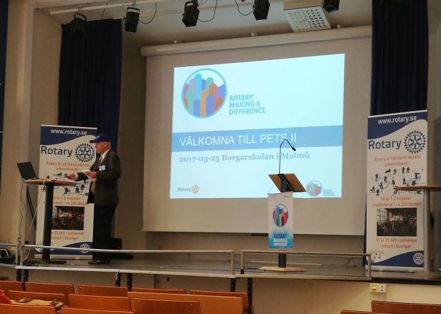 Lördagen den 25 mars var det dags för en heldag i Malmö med Rotary. Min Rotaryklubb, Trelleborg Sankt Nicolai tillhör distrikt 2390 och alla inkommande presidenter, sekreterare och skattmästare i distriktet var bjudna till PETS II. Vad är då PETS? Hur stort är distriktet. Man skulle kunna säga att distriktet är ungefär halva Skåne, gamla Malmöhus län. PETS är en förkortning som jag inte vet vad den står för. Gissar att P:et har något med president att göra.