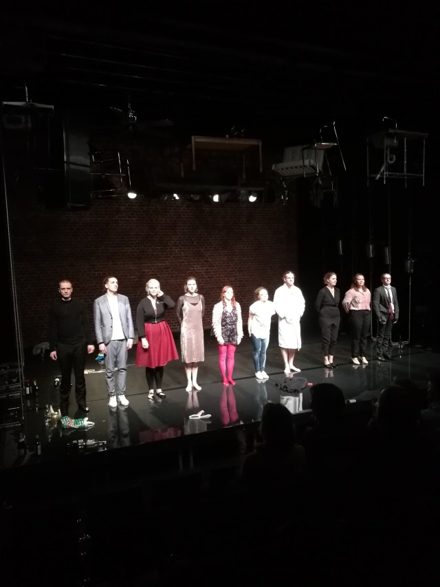 Skådespelarna var duktiga. De är på väg in i teatervärlden, på väg att bli professionella. Det är ju inte deras fel att manuset är konstigt. Tycker dock att det blir väldigt forceras när de spelar. De lever inte in i sina roller, de spelar dem.