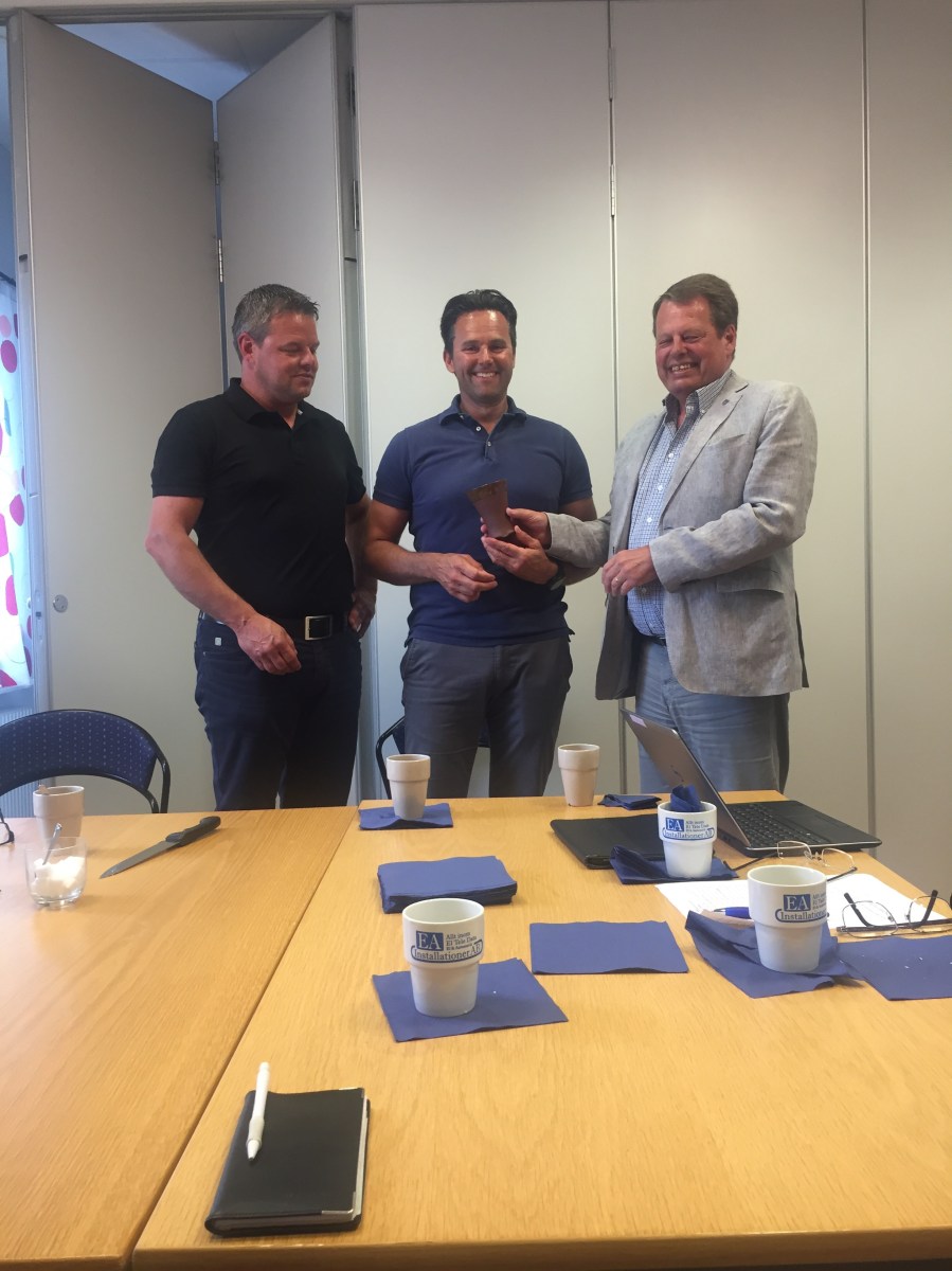 Näringsliv ← Föregående Nästa → Näringslivsutskottets ordförande Bertil Larsson (SÖS) tackar Ulf Thelin och Jonas Thelin på EA Installationer AB för dagens besök
