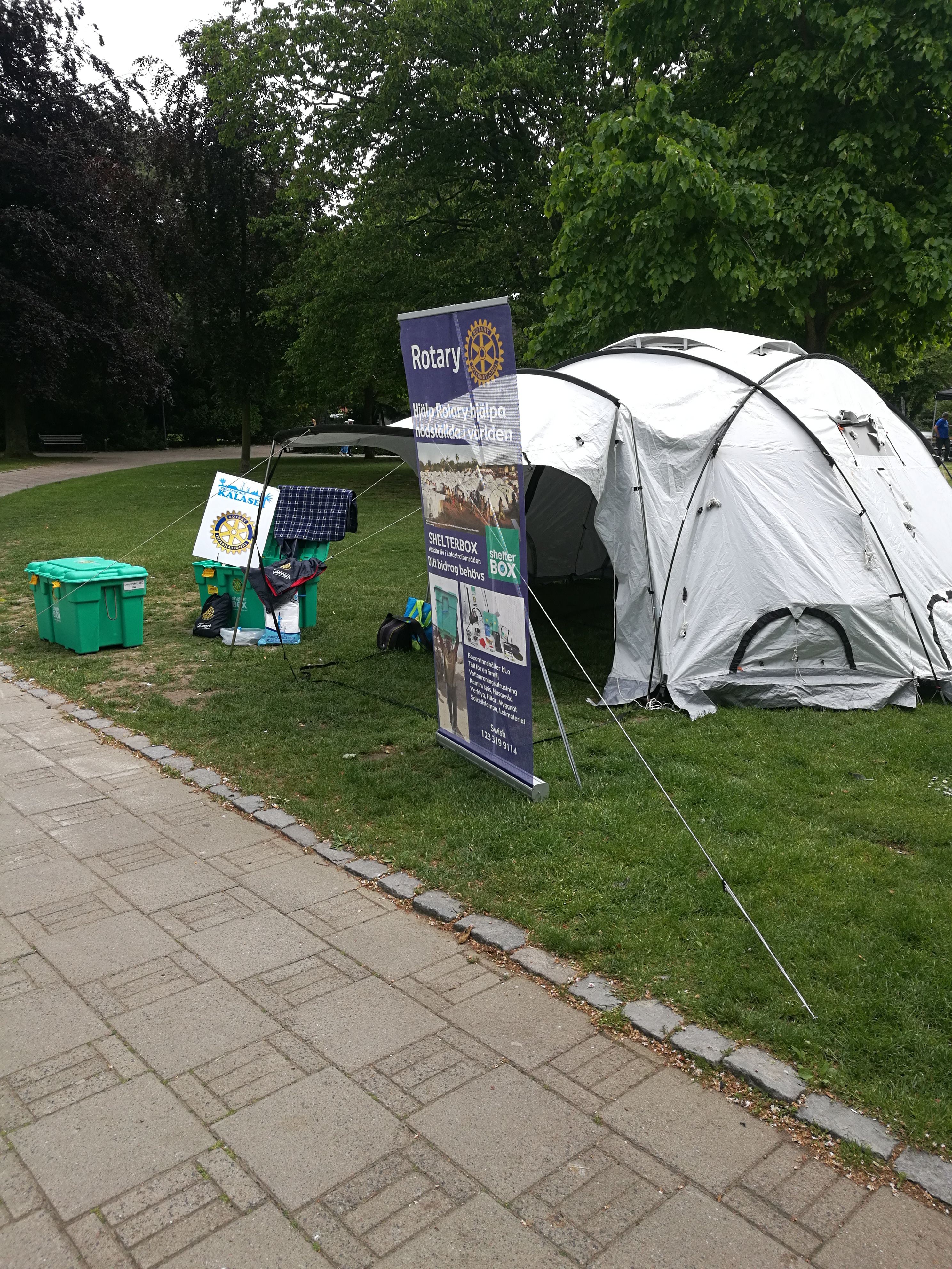 En Shelterbox i Stadsparken. Rotary visar upp sin hjälpverksamhet
