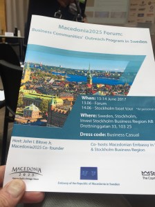 Vill nog påstå att veckans höjdpunkt var under tisdagen när jag fick tillfälle att byta några ord med Makedoniens ambassadör i Sverige. Det var i samband med Macedonia 2025 Forum i Stockholm som jag, tack vare Lena Bäcker, får möjligheten att träffa ambassadör Aleksandra Nakeva Ruzin. Ett väldigt intressant seminarium i övrigt kring Makedonien och möjligheterna att göra affärer med landet. Här finns utvecklingsmöjligheter för framtiden.