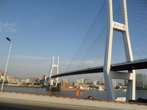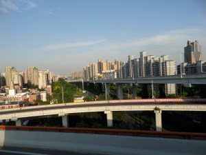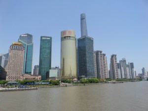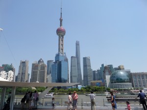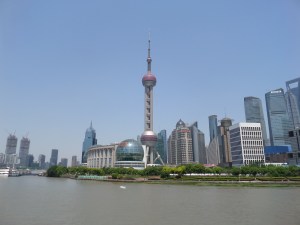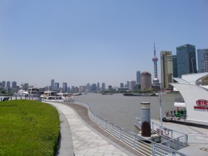Efter att ha lagt många timmar på att vandra runt här hoppade jag åter på bussen som tog mig tillbaka till ”gamla” Shanghai. På vägen tillbaka kunde man blicka ut över Huangpufloden och i fjärran se vad världsutställningen var 2010.