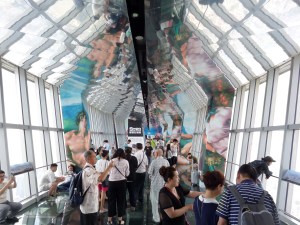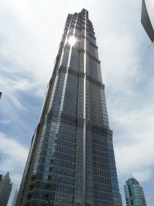Besöket i Shanghai World Financial Center var spännande. Jag gillar ju höga byggnader. Läckert att sekundsnabbt åka fyrahundra meter upp i luften. Vänlig personal som visade vägen på både kinesiska och engelska. Vädret var bra så det gick att se långt ut över Shanghai från våning 100, på 474 meters höjd.