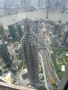 En del i mitt sätt att resa på är att just kunna gå dit jag ska. Helst inte behöva ta tunnelbana eller buss eller på något annat sätt vara beroende av någon annan. Ta sig över Huangpufloden för egen maskin var dömt att misslyckas. Ja, hade jag hetat Jesus hade det nog varit en annan femma, men nu gör jag ju inte det. Ingen bro i sikte att kunna vandra över. Inga tecken på båtar heller som gick, så jag fick förlita mig på en Hop-on-hop-off-buss. Motvilligt först, men sen gillade jag ändå att få lite information på vägen. Viktigast av allt – jag skulle få komma dit jag ville. Något lurad kände jag mig först. Det var en något påstridig biljettförsäljare som för 200 yuan såg till att jag både köpte bussbiljett och biljett till Shanghai World Financial Center. Senare visade sig att detta var en riktigt bra affär.