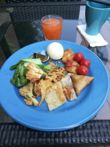 Det är så klart lite udde, för mig, att äta samma typ av mat till frukost som man normalt kan tänkas äta till lunch eller kvällsmat. OK. Jag äter inte normalt frukost men vet ungefär konceptet. Vårrullar, sushi, svarta ägg och alla möjliga steka grönsaker gör att man bara tar seden dit man kommer. Bra att få rejält med mat på morgonen, för så himla hungrig i övrigt var jag inte.
