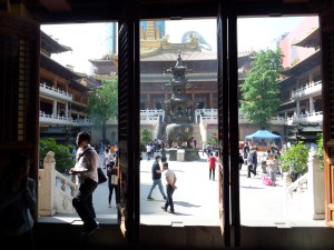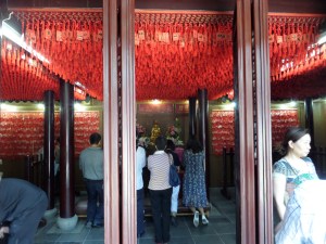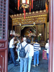 Jag besökte däremot templet, Stadsgudens tempel. Senast jag besökte ett tempel så var det i Beijing, i Lamatemplet. Där var det väldigt tydligt att man skulle respektera folk som bad och inte hålla på att ta bilder eller vara så turistisk. Här i Shanghai var det tvärt om. Det var så att jag funderade över om detta tempel var i bruk eller om det bara användes för att visas upp för besökare. Dock fanns det de som tillbad de olika gudarna, men den stillsamma tempelkänslan uteblev.