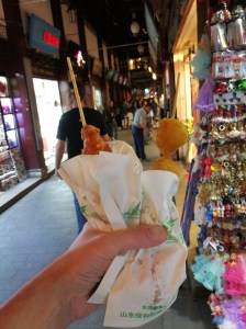 Jag var inne en sväng på Shanghai First Foodmall. Köpte med mig några kakor hem. Det var ungefär det enda jag ”vågade” köpa. Så många olika spännande saker som fanns att titta på – svampar, örter, fiskar och alla möjliga och omöjliga maträtter. Spännande att se, men vågade bara titta. Kunde dock konstatera att de hade vin och sprit till försäljning där, mitt bland all mat.