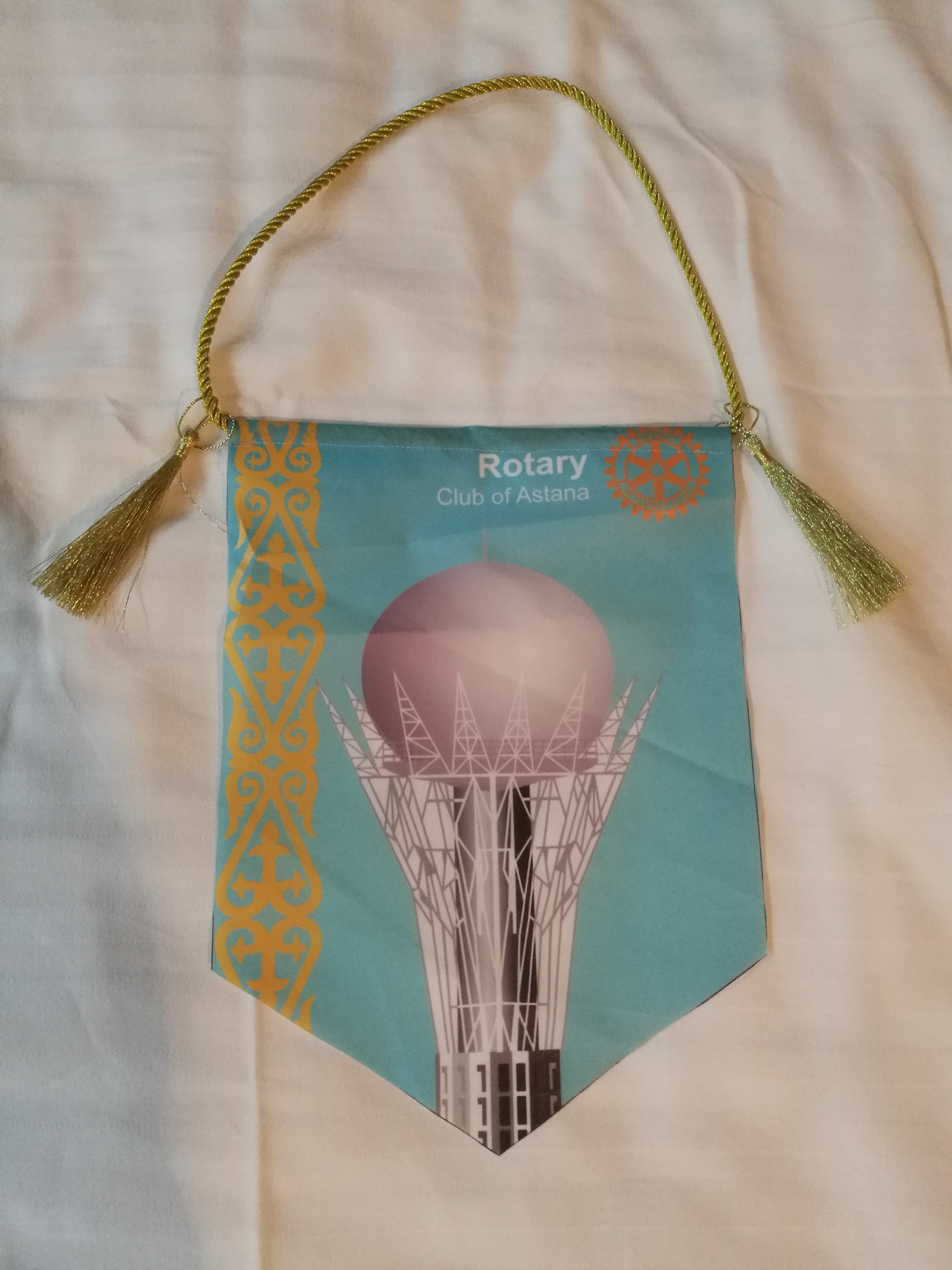 Rotaryklubben i Astana är relativt nystartad. De har funnits sedan 2015 och har cirka 15 medlemmar och några på väg in. Deras möten hålls på engelska, i ett konferensrum på hotellet. Mötet jag besökte hade lite av klubbmöteskaraktär. Presidenten höll ett föredrag om ett besök de hade haft i förra veckan från en Rotaryklubb i Nevada, Kalifornien. En klubb som de nu är vänklubb med.
