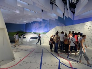 Väl inne på området var det bara att börja besöka de olika paviljongerna. I centrum av hela området ligger den stora sfäriska Nur Alem, Kazakstans paviljong. Runt denna ligger de övriga ländernas och organisationernas. På något sätt kan man säga att det finns inget naturligt ställe att börja på, utan det var bara att gå igång. Till sin hjälp fanns den orienteringskarta man får när man köper biljett, stora orienteringskartor uppställda på området, pilar och ett stort antal frivilliga vägvisare. Dessutom var området i sig lätt att orientera sig på.