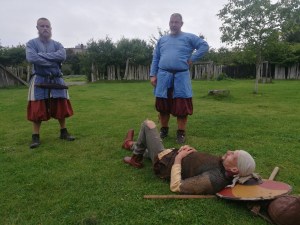 Jag hade kommit med några inspel kring manus, så det fick en lokal koppling och tydliga hamnreferenser. Den lokale jarlen, jag, har byggt en stor ny fin hamn. Gästerna är här för att fira den nya hamnen. Jarl Olaf kommer med sitt stora drakskepp, men får inte plats i med det i hamnen. Förvecklingar, lite kärlek, vikingalekar och mycket slagsmål blir det under kvällen. Det visar sig att Jarl Olaf seglat till fel hamn, får tillbaka hamnavgifter av Jarl Ulf och sen blir alla glada. Verkligen kul att få vara med och använda sina eventuella skådespelartalanger.