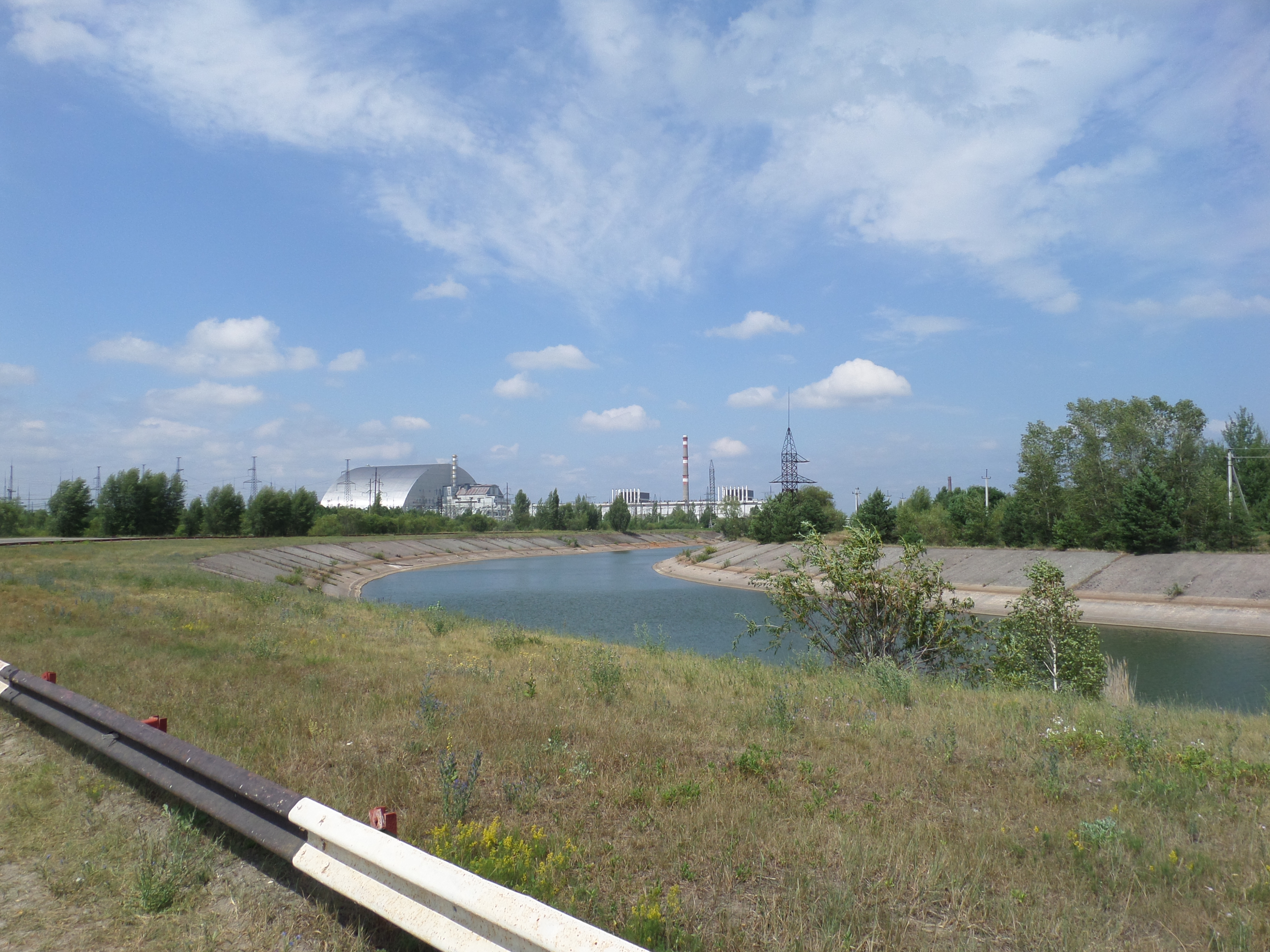 I fjärran ser man den inneslutna reaktorn och de övriga reaktorerna