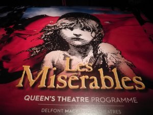 Les Misérable. Anledningen till att jag valde Les Misérable var för att detta är den musikal som spelat längst på West End, en klassiker som jag än inte sett. Det är så klart en sevärd musikal. Många bra sånger och sångprestationer.