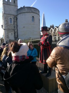 Väl inne på Towern erbjuds en rundvandring som leds av en av drottningens livvakter, en så kallad Yeomen Guard eller mer känd som Beefeater. En guidning som verkligen var både rolig och intressant. På drygt en timme ges en bild av Towerns betydelse i historien. Allt från Wilhelm Erövraren, som vann slaget vid Hastings år 1066 och påbörjade byggandet av det vita tornet, White Tower, till Henrik VIII och var hans avrättade fruar är begravda till huset där nazistledaren Rudolf Hess hölls fången och förvarningen av kronjuvelserna. Tusen års historia, allt i centrala London och med en trevlig guide som gav oss inblickar.