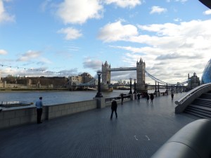 - På södra sidan av Themsen, på väg mot Tower Bridge