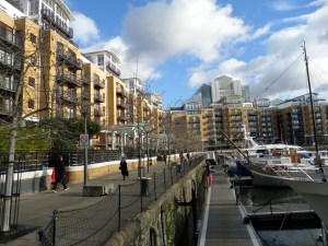 Med Tower på ena sidan fanns ett trevligt, nästan hemligt, område på andra sidan som gärna kan besökas, St. Katharine Docks. Nästan hemligt vill jag beskriva det som eftersom det är svårt att upptäcka från utsidan. Snarare avskräckt blir man av de betongbyggnader som omger området. Men, väl inne finns finare hus, gamla byggnader och en trevlig marina.