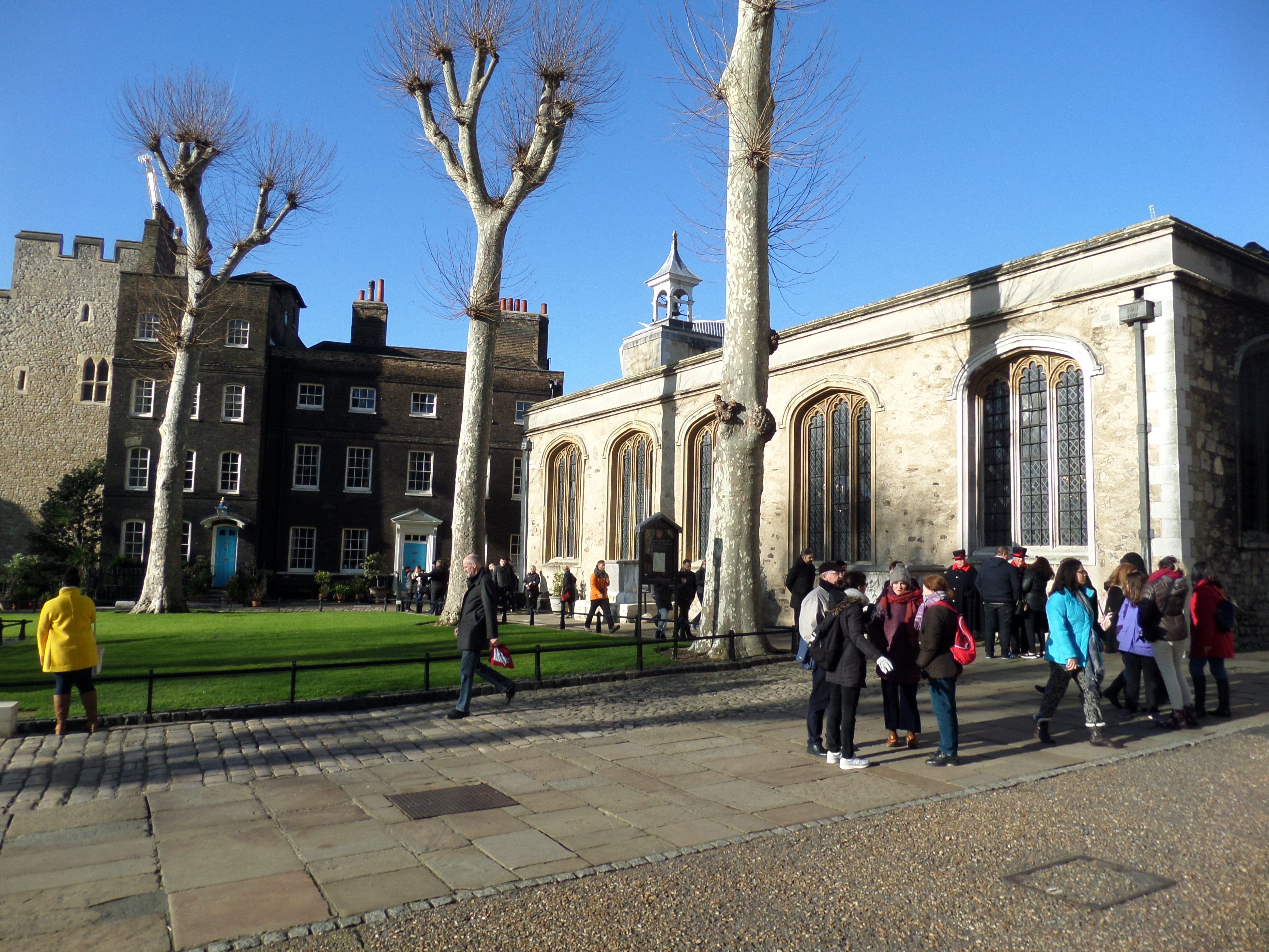 London ← Föregående Nästa → Kapellet inne på Towern med husen där slottsläkaren och slottsprästen bor