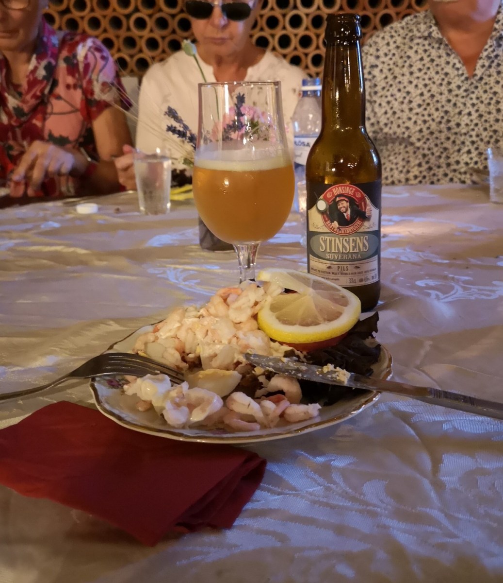En läcker räkmacka och en lokalt producerad öl