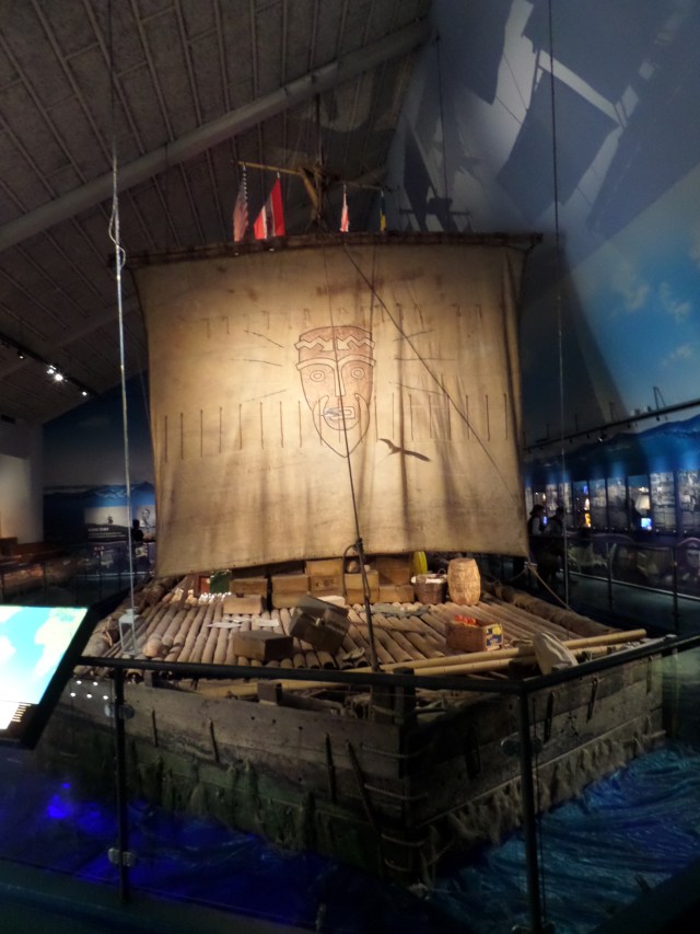 Efter besöket fortsatte jag vandringen ner mot havet. Där ligger tre havsrelaterade museer, Kon-Tiki museet, Fram museet och Norges maritima museum. Jag valde att bara besöka Kon-Tiki museet för att se utställningen kring Thor Heyerdahl och skeppen Kon-Tiki och Ra och dess resor. Intressant att se de båda fartygen/skeppen/båtarna/flottarna som använts för att ta sig ut på Stilla havet.