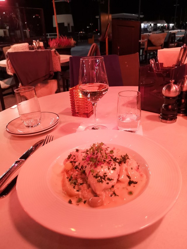 - Kvällens måltid med ”monkfish”, hummersås och goda tillbehör
