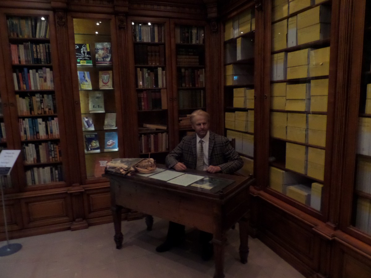 Thor Heyerdahl i sitt bibliotek