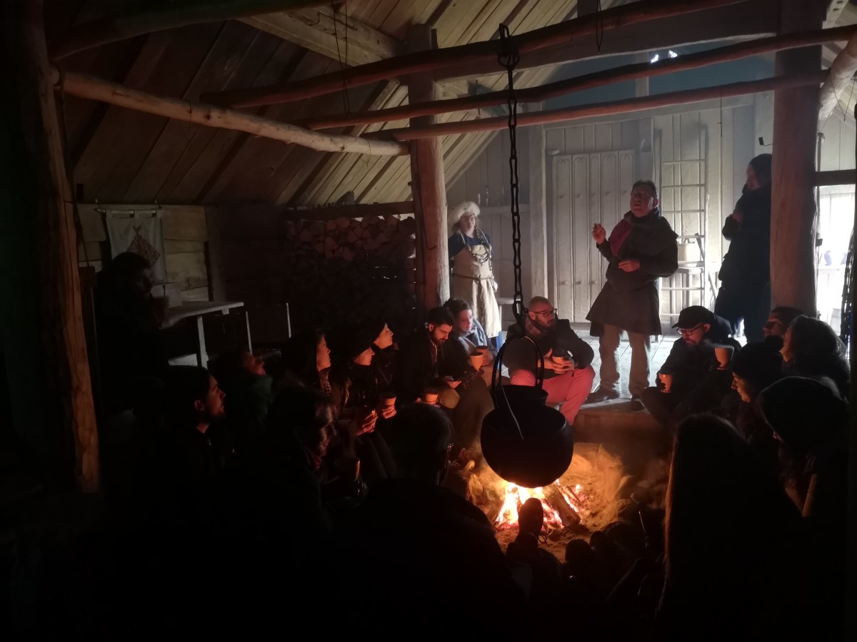 Peter berättar sagor för andra gruppen och borgfrun lyssnar
