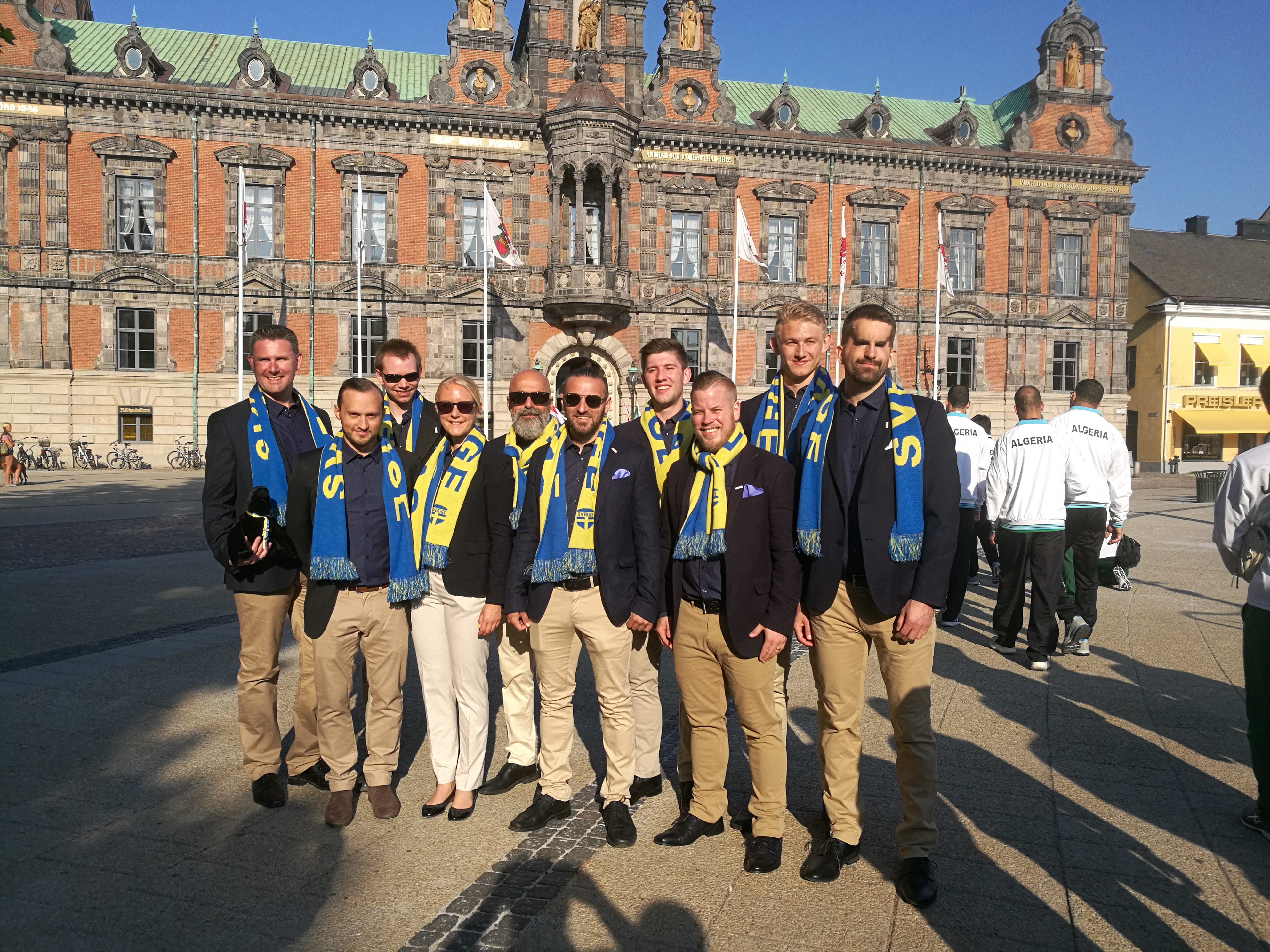 Landslaget på plats inför invigningen av VM på Rådhuset i Malmö