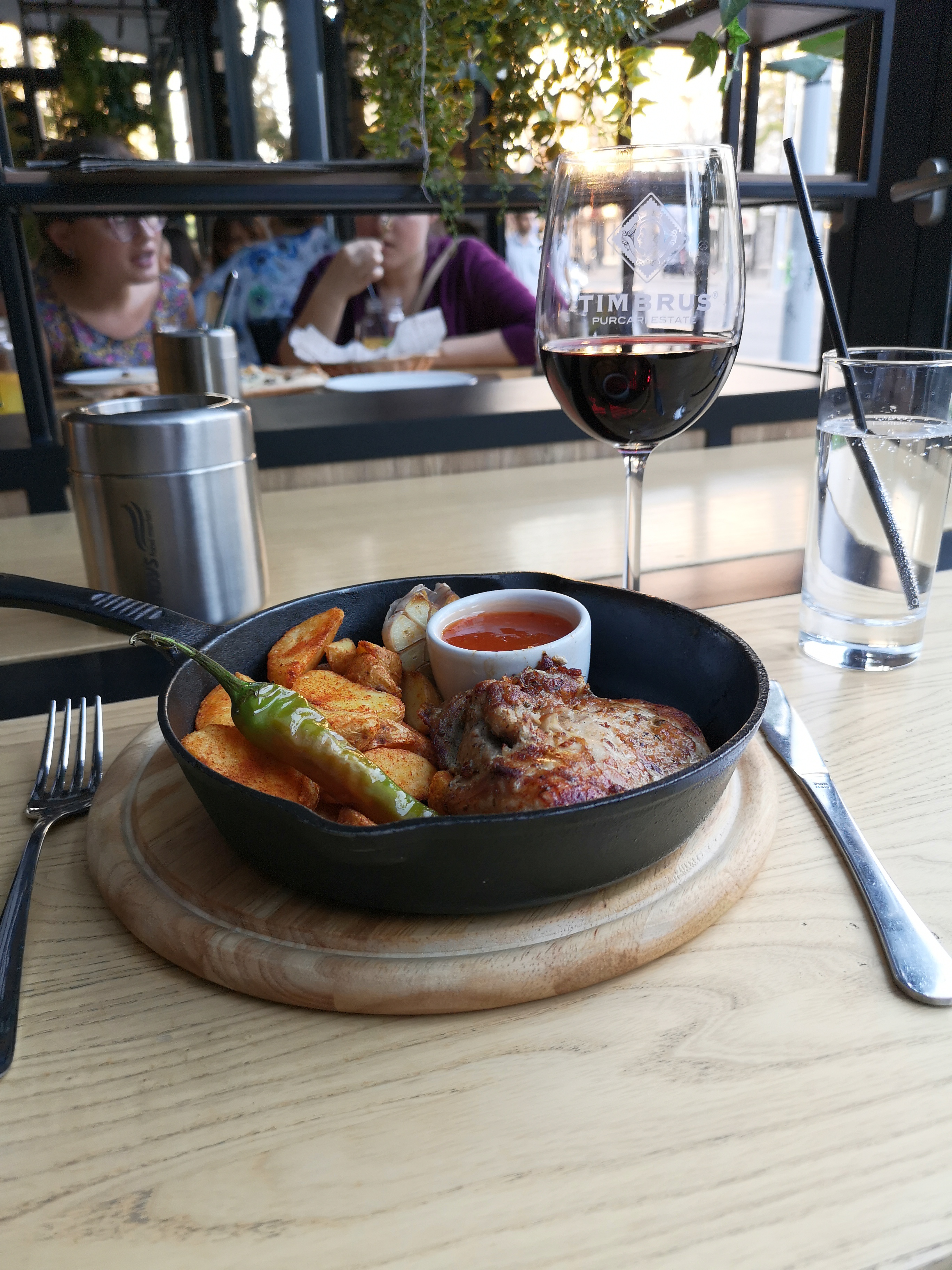 En bit kött i panna med moldaviskt rött vin
