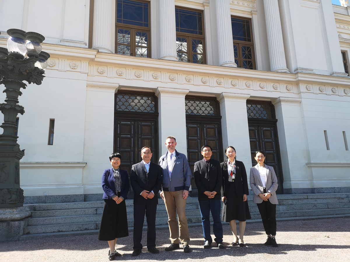 Delegationen från Hubei framför universitetshuset, Lunds universitet