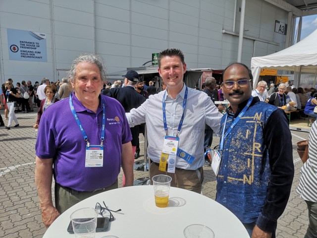 Nuvarande världspresident, Barry Rassin, hade tyskt tema på sin lunch under måndagen. Tysk öl och lite umpa-bumpa musik för att vara mer exakt. Vid mitt bord satt ett syskonpar från England och en kvinna från USA. I övrigt var det tomt, men det gjorde ju att vi andra kunde ta en öl till om vi ville. Lunchen inleds med att presidenten från världspresidentens klubb håller ett välkomsttal, därefter presenteras alla dignitärer som är med på lunchen. Alla som varit världspresident, nuvarande styrelse, styrelsen för The Rotary Foundation och några andra höjdare. Därefter äter vi och innan det hela tar slut höll Barry Rassin sitt tal till oss.