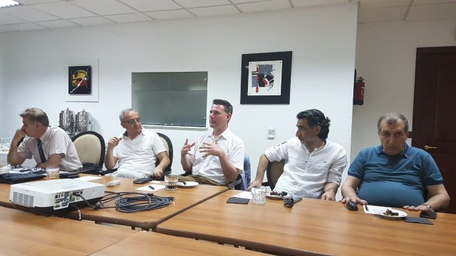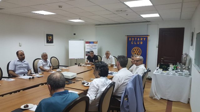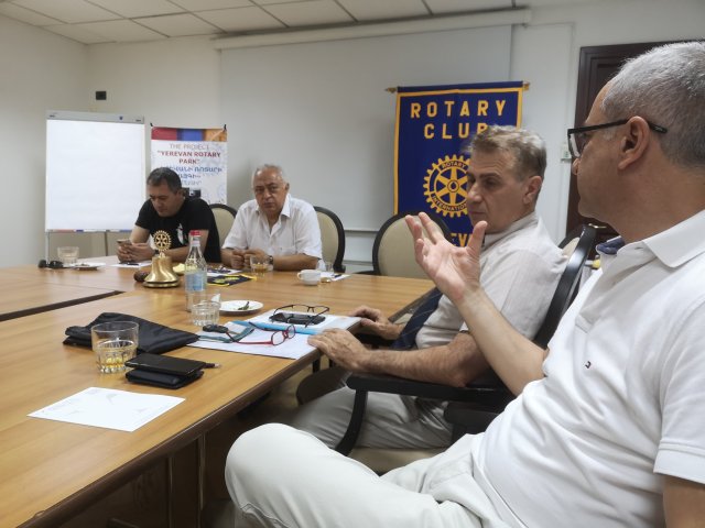 Mötet i Jerevan började med att jag välkomnades och fick presentera mig, mitt distrikt 2390 och min klubb Trelleborg-S:t Nicolai Rotaryklubb. Lite nyfikna frågor som fick sina svar. Efter en stund övergick träffen till att diskutera klubbens egna angeläger, på armeniska. Ashot gav kort information om vad som avhandlades.