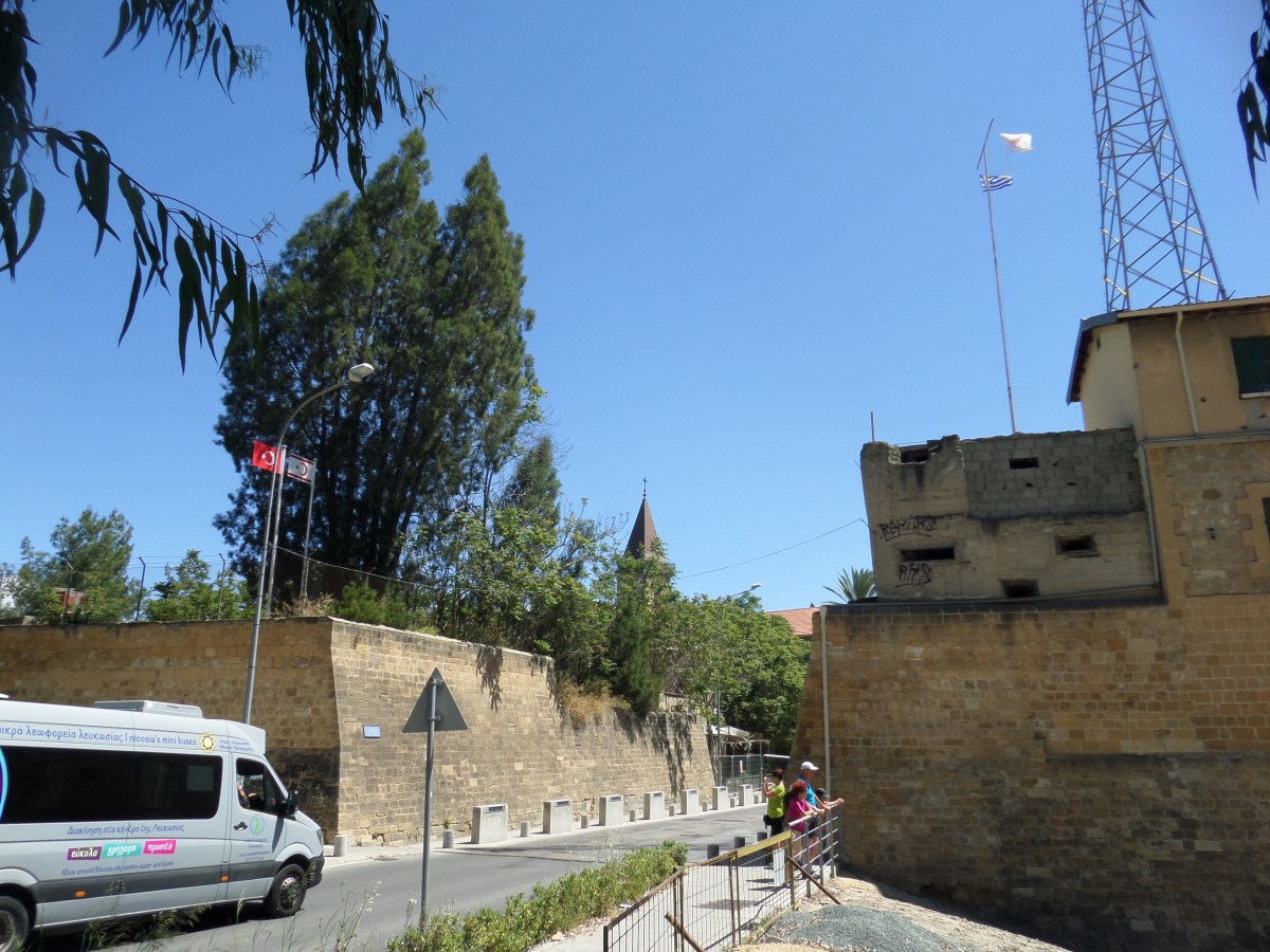 Nicosia ← Föregående Nästa → Till höger Cypern, till vänster Turkiet och mitt emellan en väg in till Nicosia