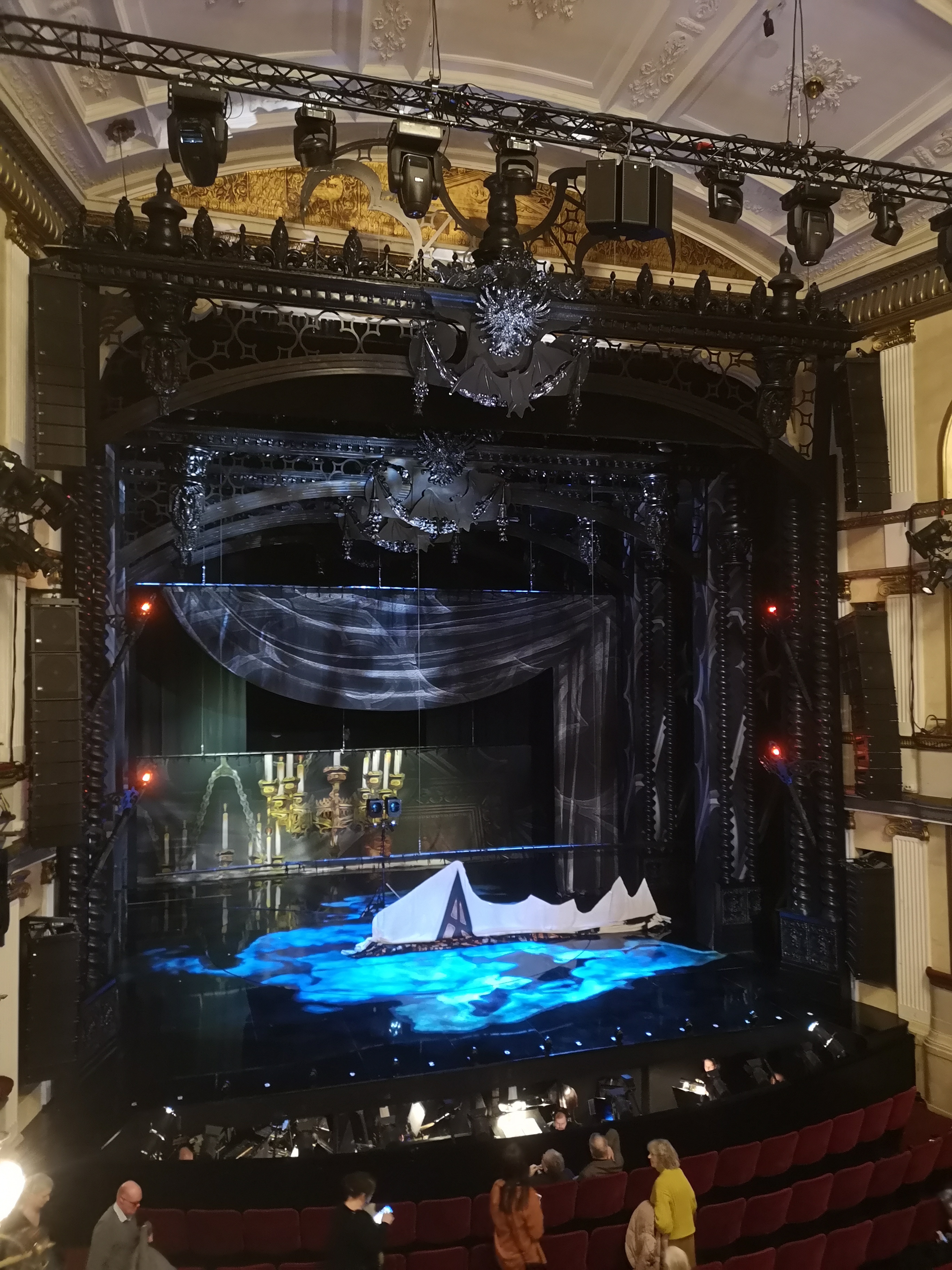 Det är en tidvis storslagen produktion men tidvis snarare lite småtafflig. Det är scenerna i slottet som är storslagna. Imponerande scenbyten och miljöer. Det var när vi var i byn och på värdshuset som det var ganska tråkig dekor. På gränsen till att jag funderade på om det var någon form av satir, en sarkastisk dekot.