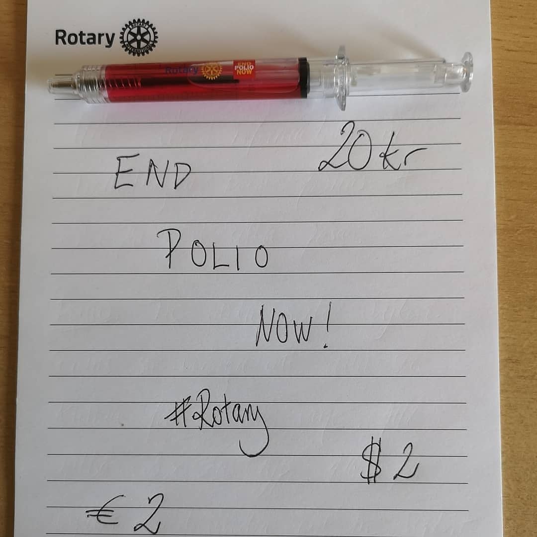 En penna kostar 20 kr och då går $1 till kampen mot polio.