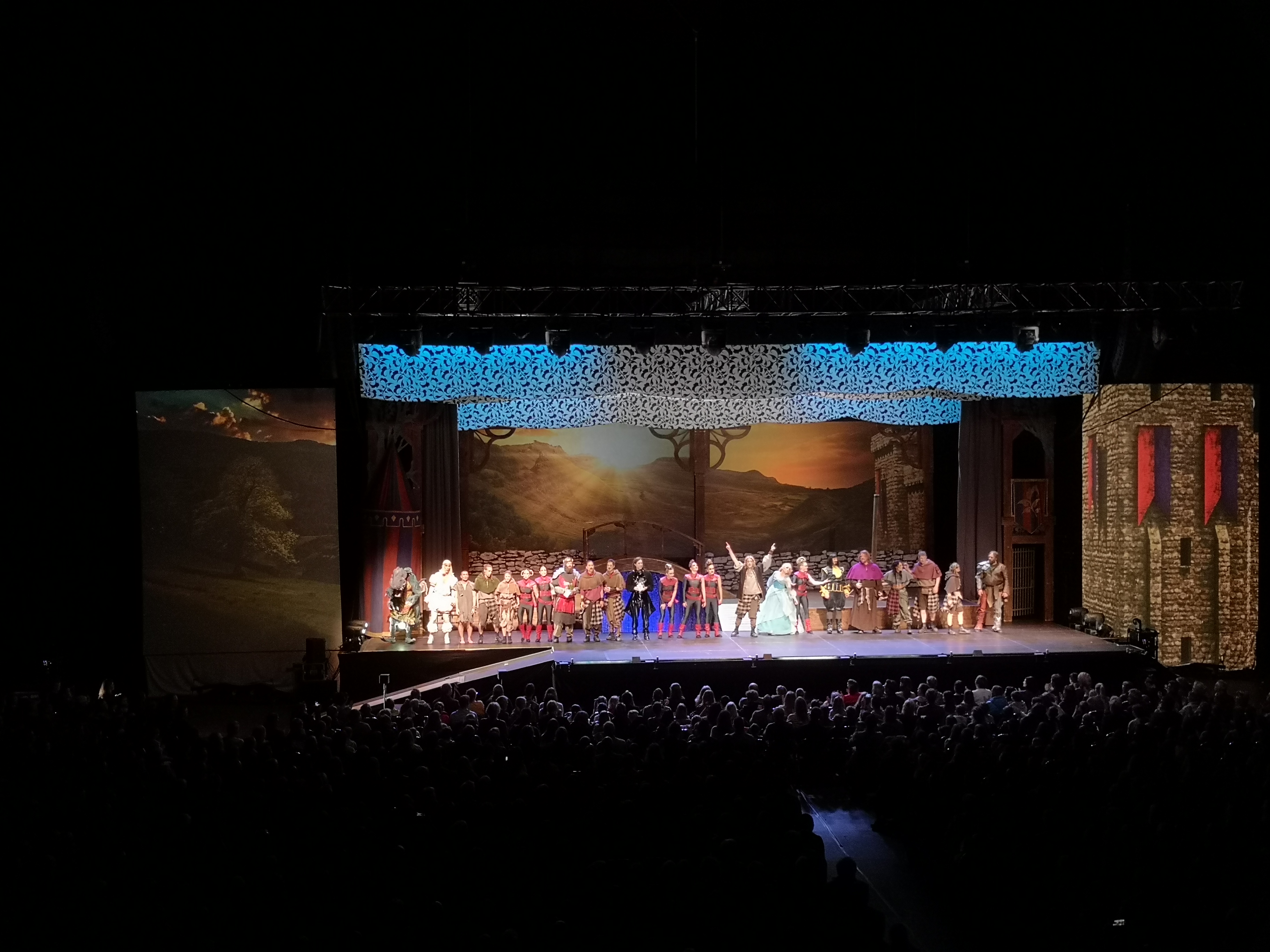 Med tanke på att detta är en musikal som är på turné är scenen gjord på ett bra enkelt sätt. Men ändå förekommer scenbyten och viss rekvisita. Stora LED-skärmar gör att vi lätt kan ta oss till skogs för att sen snabbt hamna på slottet. Vid tillfällen användes också sidorna på scen som stora TV-skärmar, vilket gjorde att det blev än lättare att se de olika karaktärerna på nära håll.