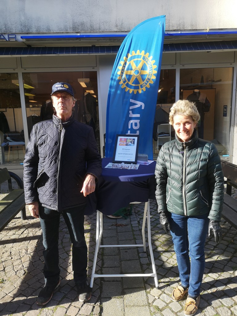 Under de fyra timmarna som klubbens medlemmar var på plats såldes 110 pennor samt en del spontana bidrag gavs till kampen mot polio. En penna kostar 20 kronor. Vid köp av en penna går lite mer än en dollar till kampen mot polio. Tack vare den uppväxling som sker via Bill and Melinda Gates Foundation blir det totalt tre dollar. Det är tre dollar som behövs för att kunna vaccinera ett barn till poliofritt liv. Det betyder att i princip varje såld penna ger ett barn vaccination mot polio.