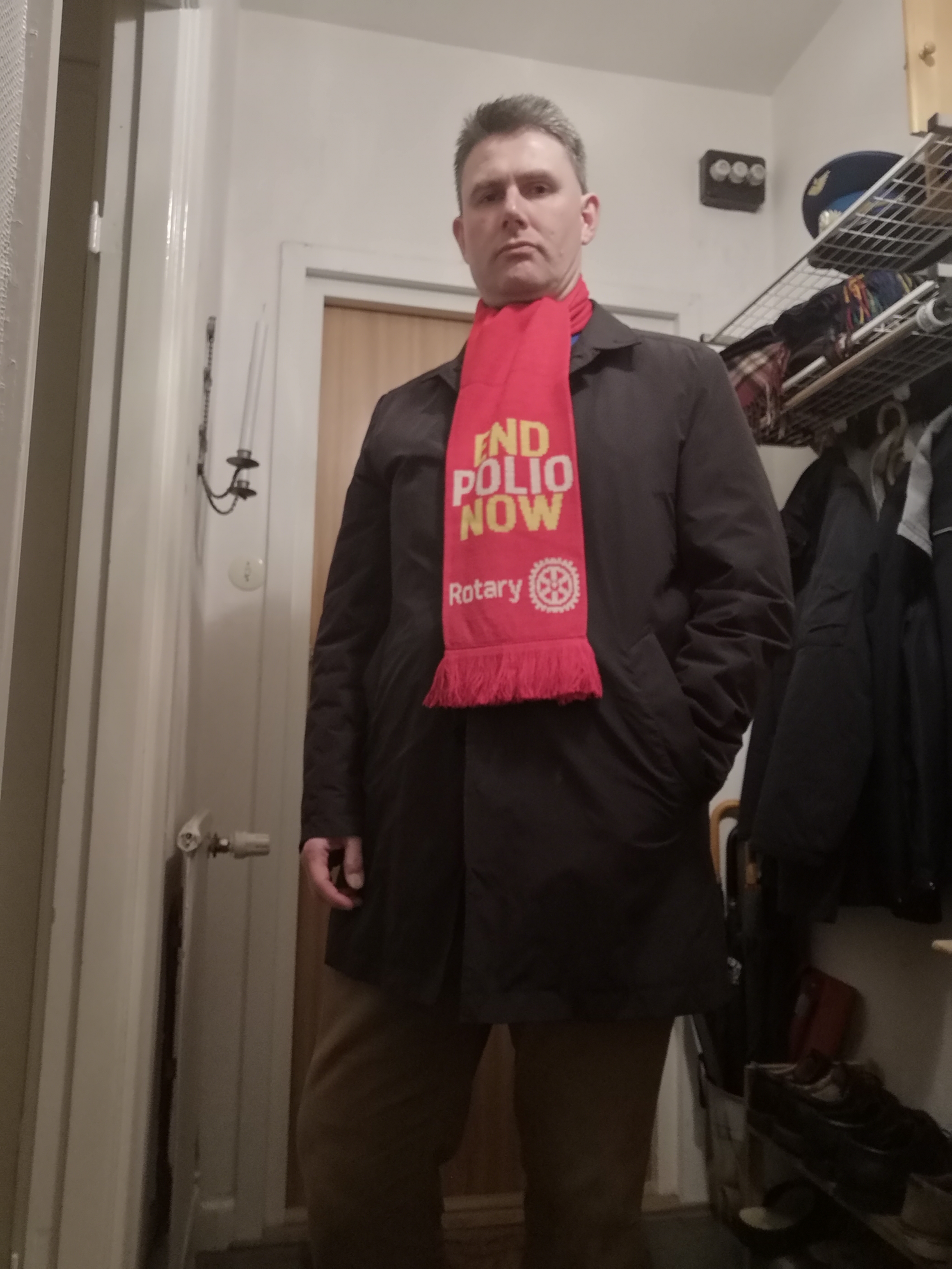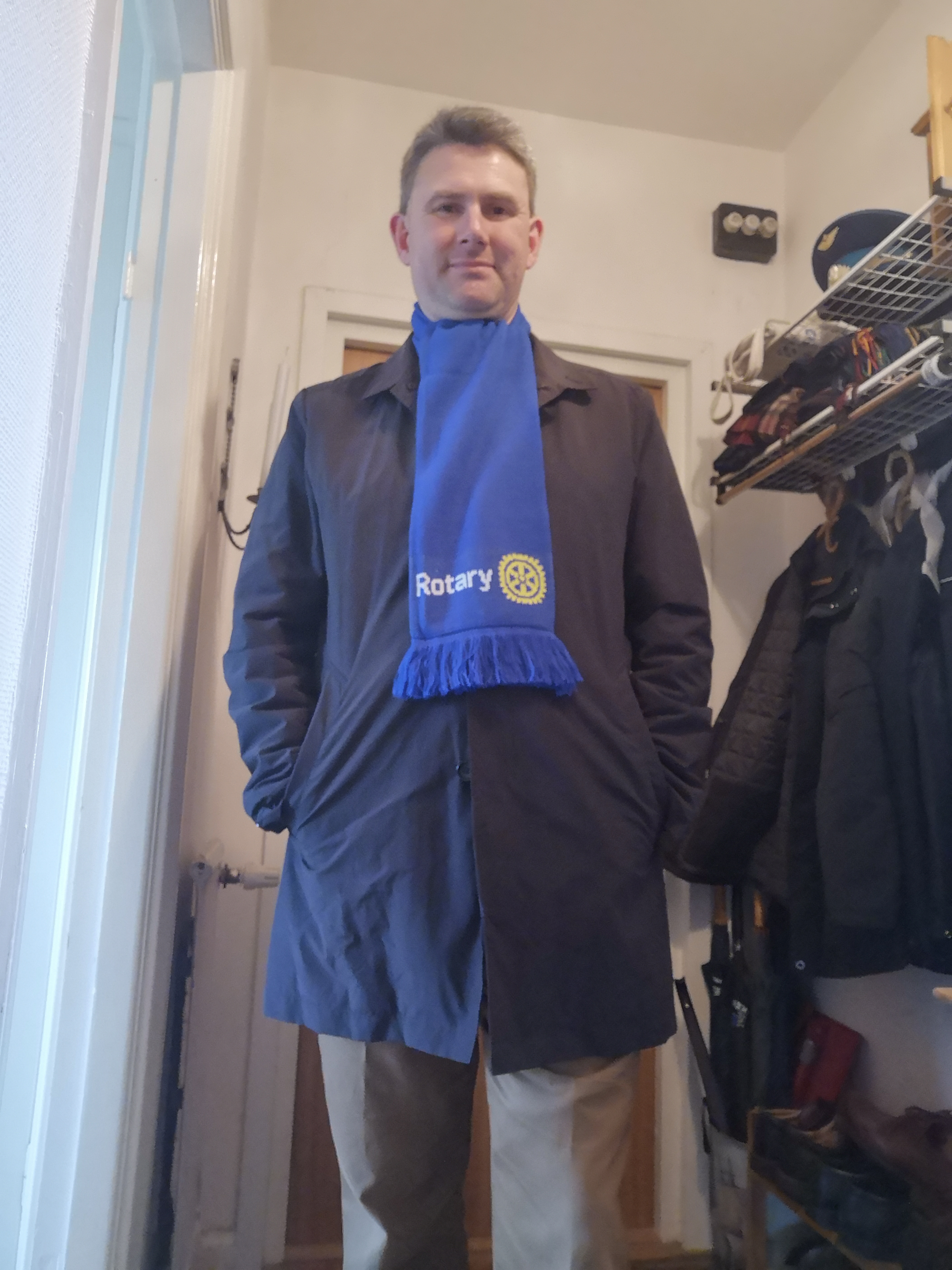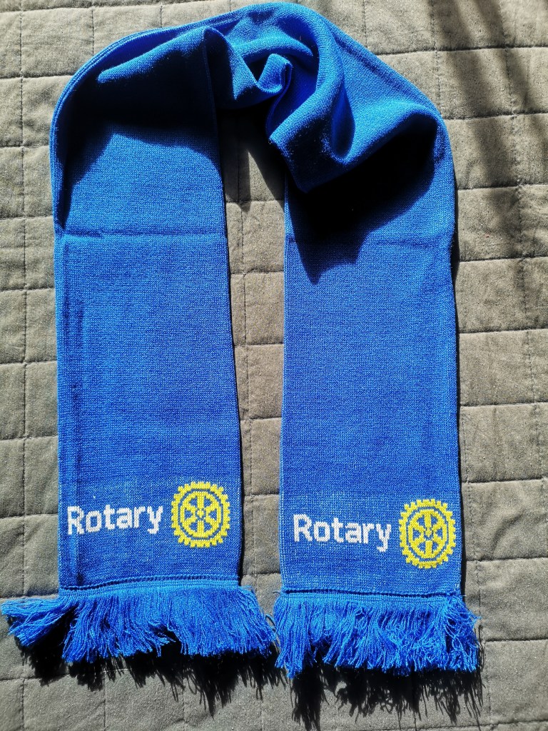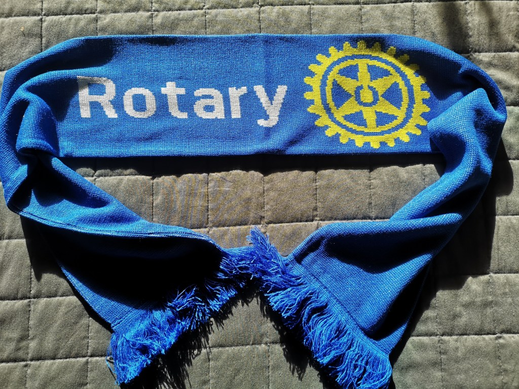 Jag har tagit fram tre halsdukar som är – i alla fall enligt mig – snygga, praktiska och sköna. Samtidigt när man köper en halsduk synliggör man Rotary och bidrar till välgörenhet. Halsduken kostar 150 kronor och då går 50 kronor till någon av Rotarys verksamheter. Själv tjänar jag inget på detta, utan hela behållningen går till verksamhet.