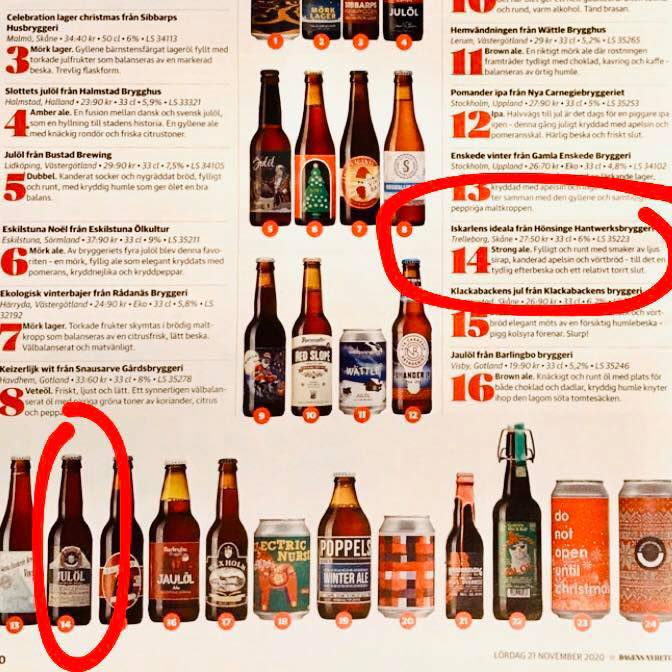 För mitt eget varumärke, Taste of Viking, blev det också ett bra år. Årets julöl, Jarlens julöl kryddades med körvel, en mörkare lättöl som nästan sålde 600 flaskor mot drygt 300 förra året, dock med annan smaksättning. Slutsålt båda åren. Jarlens öl, folkölen, ökade från 826 flaskor till 2 820 flaskor i år. Folkölen lanserades i augusti 2019. Starkölen, Jarlens öl 4,6 %, gjorde sin debut på Systembolaget i december 2019. Sålde i år 3 842 flaskor mot 1 152 flaskor första året. Jarlens öl är en ljus modern lager smaksatt med nässlor.