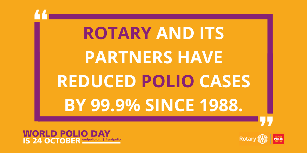 Idag skriver vi den 24 augusti. Anledningen till att jag idag skriver till dig är att det är två månader till den 24 oktober, World Polio Day. Distriktets klubbar har de senaste åren, på olika sätt, uppmärksammat denna dag. På vår hemsida finns en artikel kring det vi gjorde med anledning av World Polio Day förra året. Informera dig och inspireras till nya aktiviteter genom denna eller denna artikel.