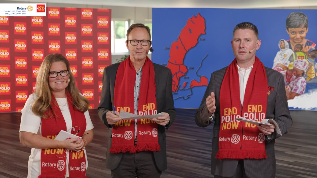 På plats i studion var Elisabeth Bava som fått polio som barn och berättade sin historia. Judith Diment, ledamot av den internationella PolioPlus kommittén och Leif R Carlsson, hennes svenska motsvarighet, berättade om Rotarys engagemang i kampen mot polio. Från World Health Organzation (WHO) kom Dr Shahin Huseynov och gav dagsaktuell information om arbete mot polio och hur läget ser ut i världen.