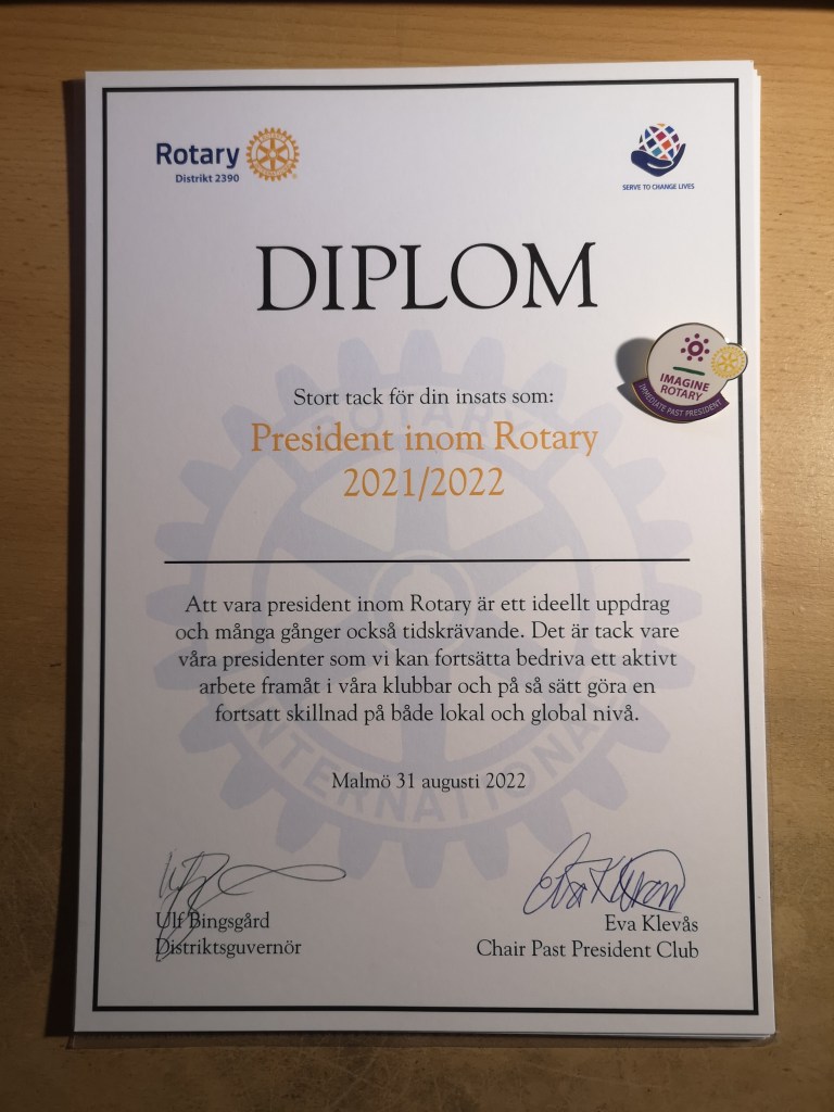 Sammantaget blir det många timmar våra klubbars presidenter lägger på Rotary, Och ingen riktigt tackar av presidenterna för deras engagemang. Mycket fokus på att göra presidenterna redo för uppdraget, men lite tänk kring att tacka dem för deras engagemang.