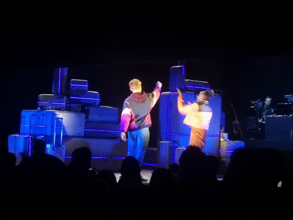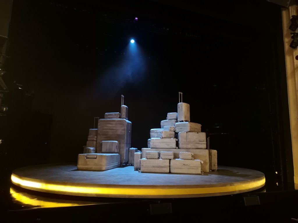 Massor av resväskor fyller scenen och det är i princip den enda scenografafi som finns. Det är väldigt sparsamt men ändå lyckas de skapa miljöer och scener. Resväskorna kan användas till mycket och har olika innehåll.