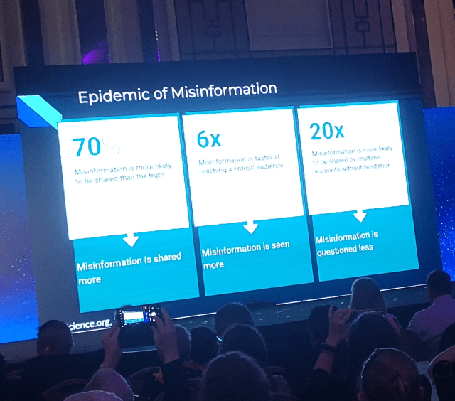 Konferensen hade både general sessions där vi alla var samlade och breakout sessions, eller workshops, där man kunde fördjupa sig kring vissa områden. Sheldon Himelfarb, ordförande för International Panel on Information Environment (IPIE) berättade om många olika tech-bolag som startas upp till följd av krig till exempel appar som varnar för missilanfall. Men vi påmindes av den ständigt pågående pandemin av desinformation som försvårar för fredliga lösningar. Desinformation delas oftare, ses mer och ifrågasätts mindre. Även miljö- och klimatfrågor var en del av konferensens frågor som adresserades, bland annat kring hur klimaten och hur till exempel vattenflöden känner några landsgränser.