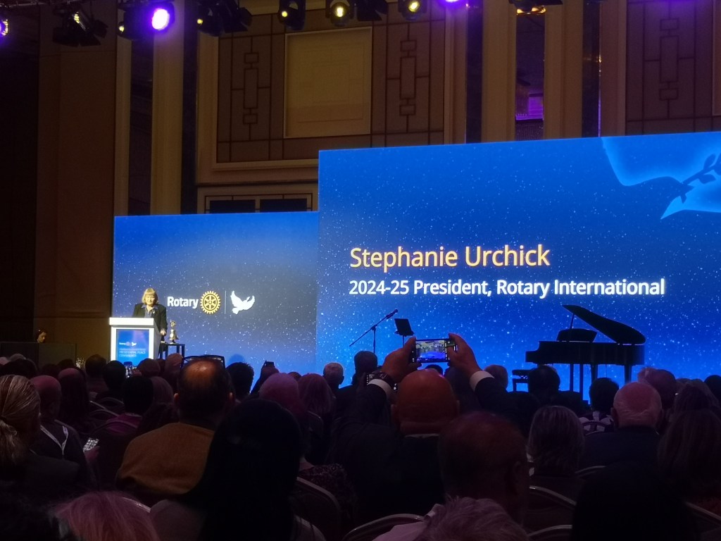 Rotary International President Stephanie Urchick gav en avslutande analys om att det är mycket som behöver göras, och att det kommer krävas mycket. Men vi i Rotary är inte de som backar för tuffa utmaningar. Vi kan vara med och läka en delad värld.