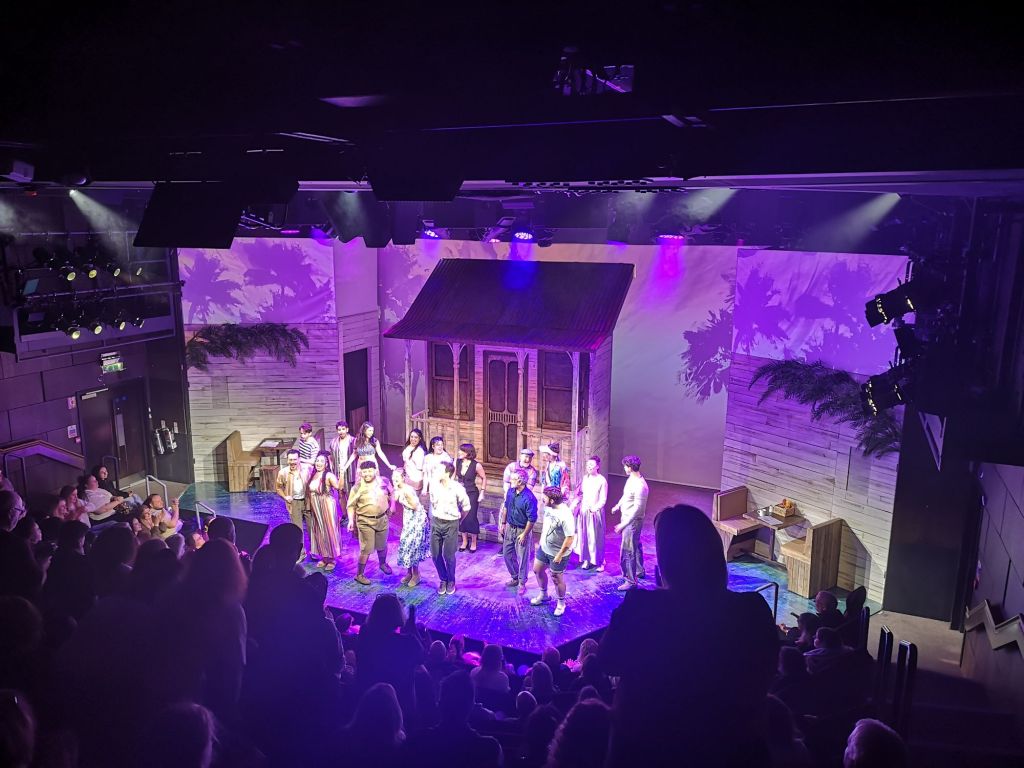 Teatern The Other Palace är en tämligen liten teater vilket påverkar möjligheterna till storslagna scener. Det gör att de får tänka kreativt när de ska skapa olika scener. En centralt placerad multifunktionell stor ”låda” visar sig vara mycket innehållsrik och användbar till detta. Den i kombination med en del rörliga scendelar och videoprojektioner hjälper till att ta oss till olika delar av Key Largo. Vi hamnar till och med en sväng i Venedig.